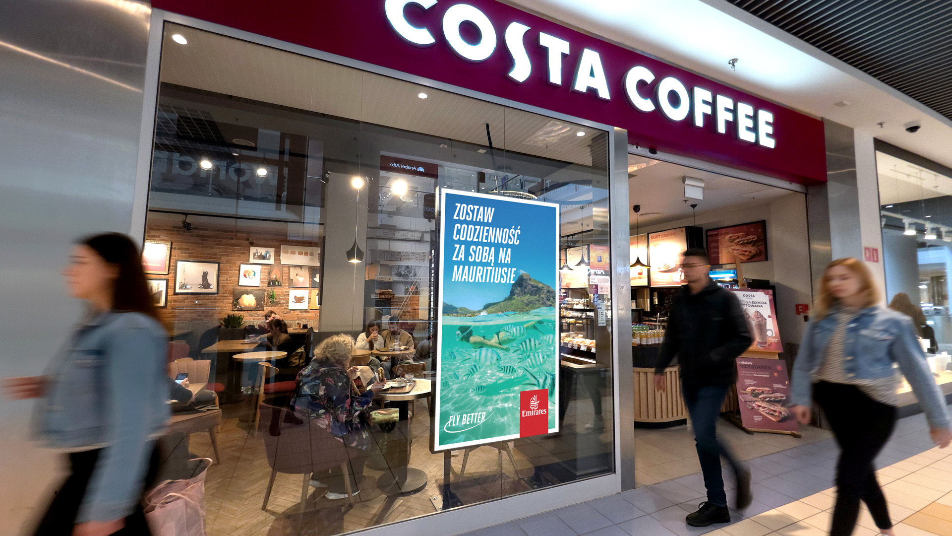 Cyfrowe Witryny Premium to ekskluzywna sieć ekranów reklamowych w witrynach kawiarni Costa Coffee i So Coffee. Lokale znajdują się w galeriach handlowych segmentu premium oraz lokalach przy głównych ulicach i w sercu śródmieść największych polskich miast.
