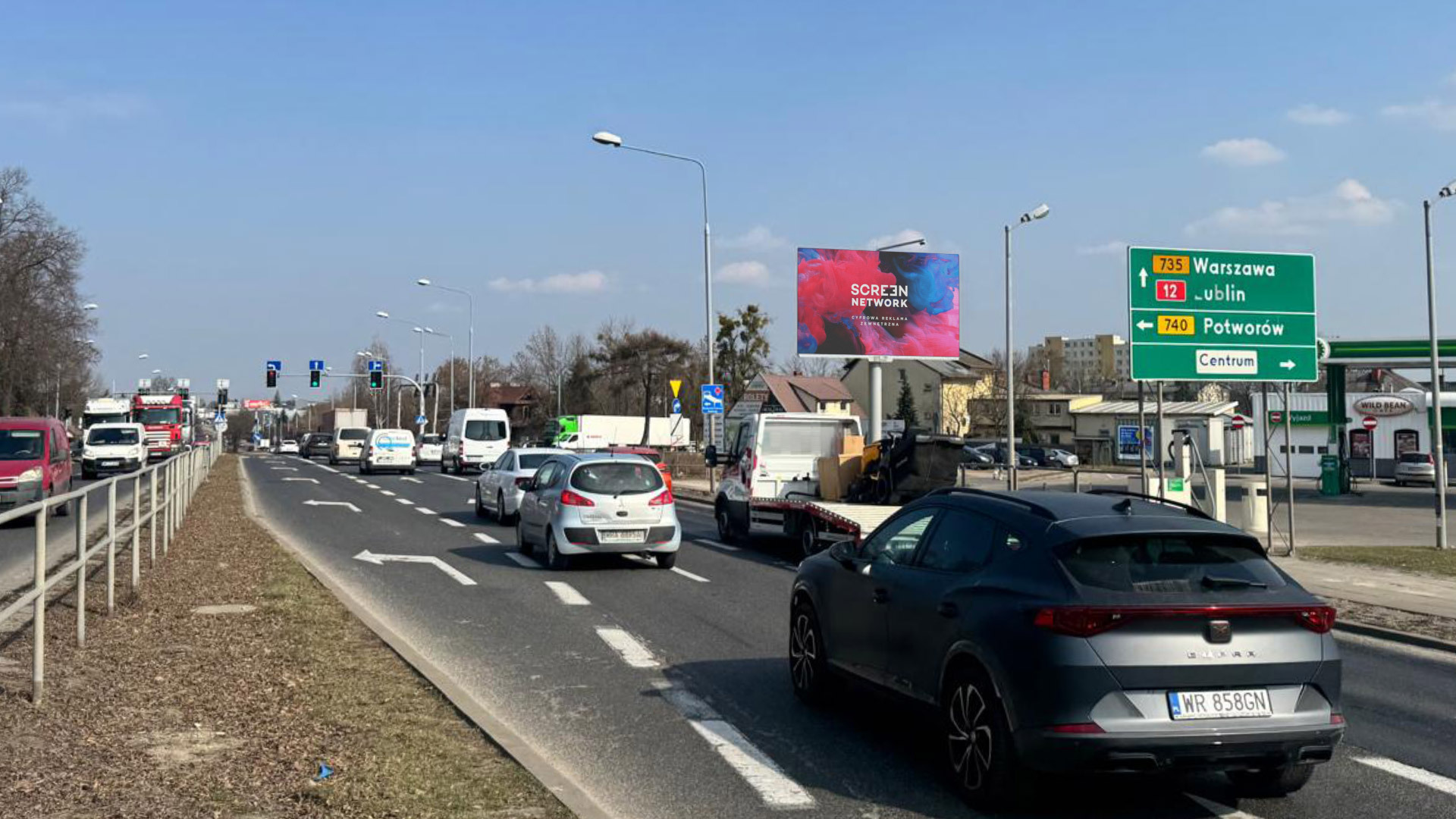 Ekran jest doskonale widoczny zarówno dla osób wjeżdżających do Radomia od strony południowej, jak i dla kierowców znajdujących się na skrzyżowaniu z ulicą generała Leopolda Okulickiego, co znacząco wydłuża kontakt z przekazem reklamowym.