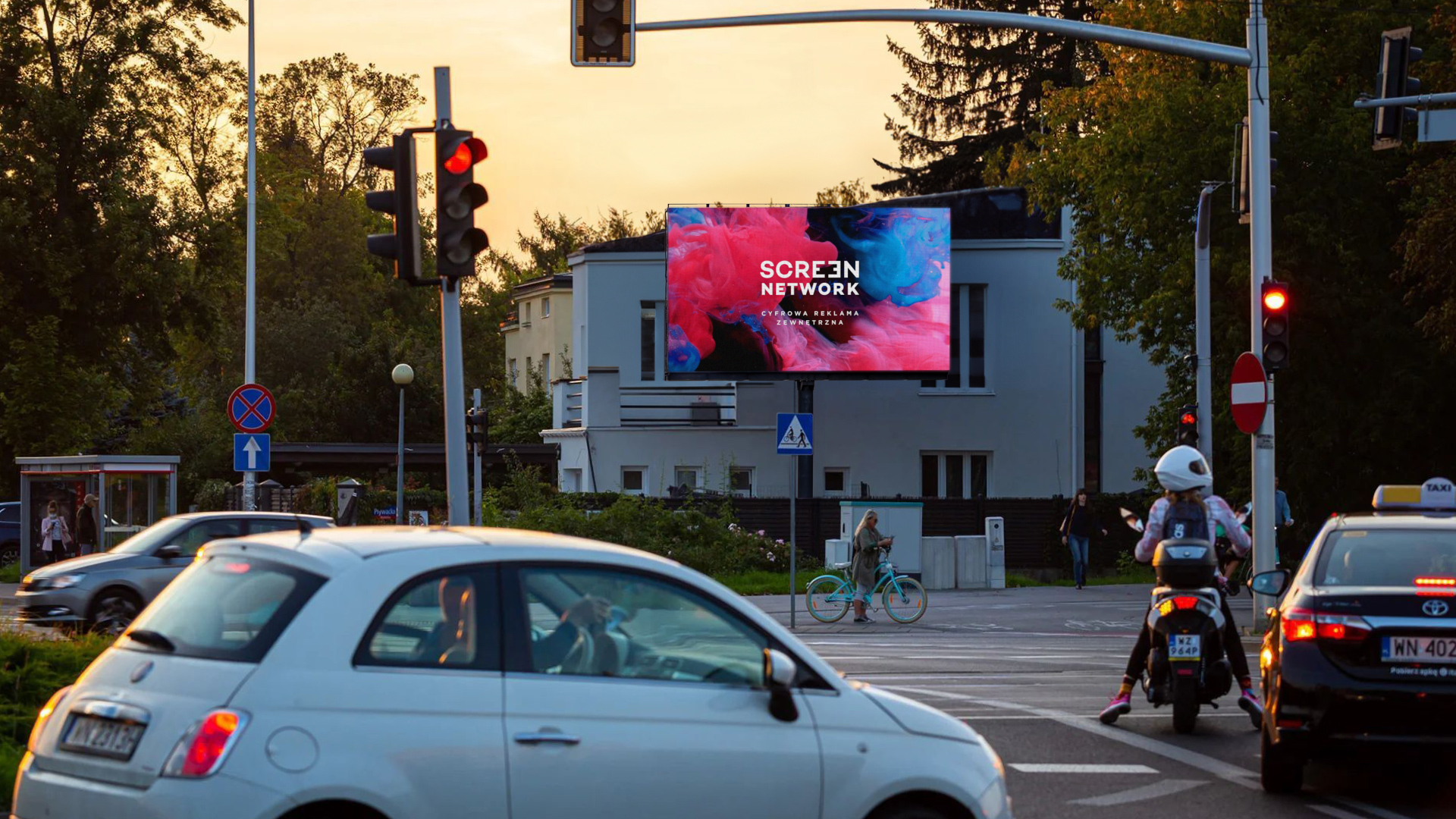 Telebim reklamowy znajduje się przy Rondzie Schumana – u zbiegu ulicy Racławickiej, Wołoskiej i Odyńca na warszawskim Mokotowie. Ekran jest doskonale widoczny dla osób jadących w kierunku biurowego centrum miasta. Został zainstalowany centralnie w osi jezdni. Dzięki temu prezentowane na nim reklamy są doskonale widoczne dla kierowców oczekujących na zmianę światła. Nośnik wyróżnia się bardzo dużym natężeniem ruchu i długim kontaktem odbiorcy z wyświetlanym komunikatem. Reklamy prezentowane na ekranie są widoczne z trzech kierunków jazdy, a także dla pieszych i pasażerów komunikacji miejskiej.