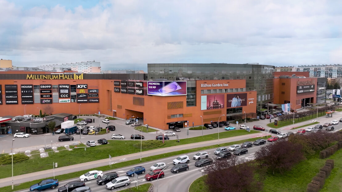 W centrum Rzeszowa uruchomiliśmy największy narożny ekran reklamowy na Podkarpaciu. Nowy nośnik o powierzchni 123 m² został umieszczony na fasadzie Millenium Hall — największego centrum kulturalno-handlowego w Rzeszowie i na Podkarpaciu. Dzięki narożnej konstrukcji ekran jest widoczny z kilku kierunków ruchu i wprowadza do regionu format reklamowy znany z największych miast – efektowne kreacje 3D.